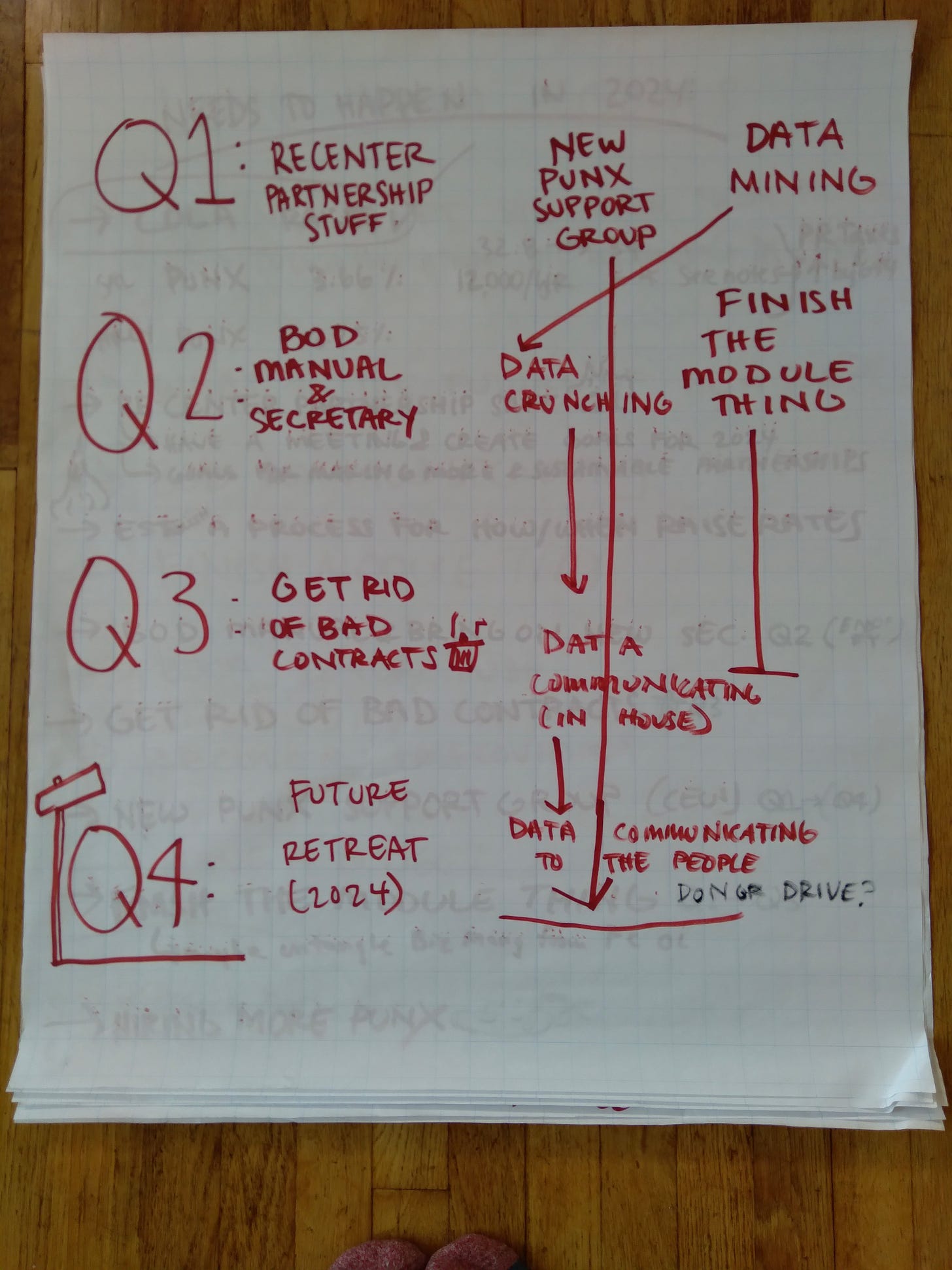 We made a list of some long term goals for Finance Circle, then we identified some doable short term objectives for 2024 (including picking up some loose ends from 2023), and then mapped them on to the quarters. I love that part.